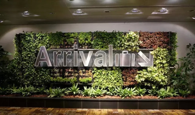 室内垂直绿化墙兼指示牌,让人眼前一亮。主要植物有空气凤梨、绿萝、竹芋、鹅掌藤、网纹草等。