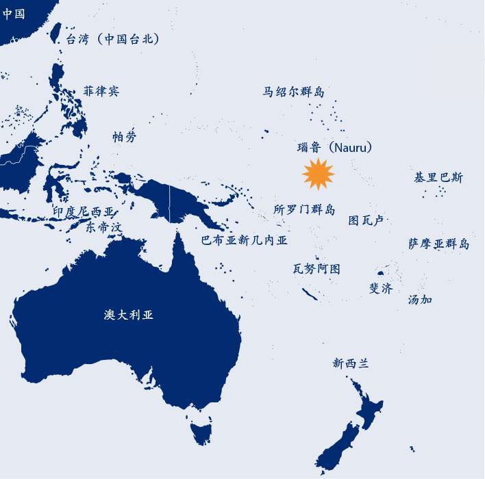 瑙鲁是大洋洲微型岛国,陆地面积 21.1 平方千米,人口约 1.3 万,无首都,行政管理中心在亚伦区。曾因磷酸盐矿繁荣,现资源枯竭,经济依赖外援和捕鱼证收入。2024 年宣布承认一个中国原则,与中国恢复外交关系。