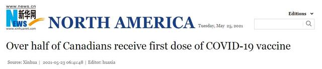 新华网援引CTV报道,加拿大一半以上的人口已经接种了至少一剂新冠疫苗。